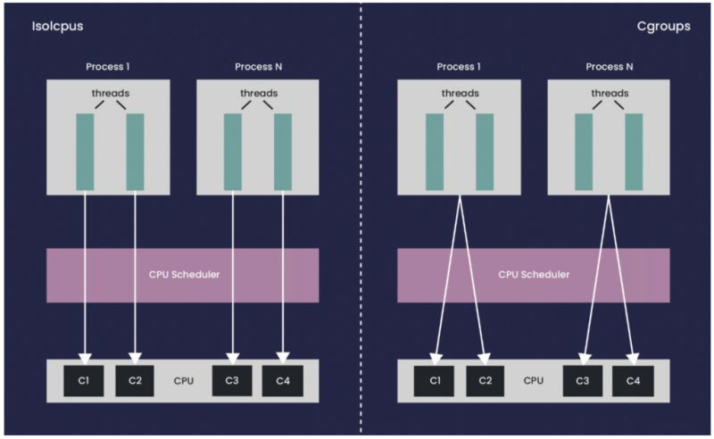 CPU Isolation is a Linux kernel feature that designates specific CPUs as isolated from general-purpose scheduling. Isolated CPUs do not handle regular workloads; instead, they focus on specialized tasks like real-time processing. This reduces interruptions and leads to lower latencies and more predictable performance.