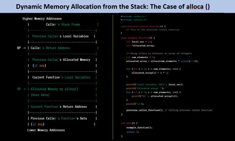 Have you ever wondered if memory allocation could be performed dynamically from the stack? 🤔 Let’s delve into a fascinating topic: the use of “alloca()” , a lesser-known function that allocates memory on the stack frame of the caller.